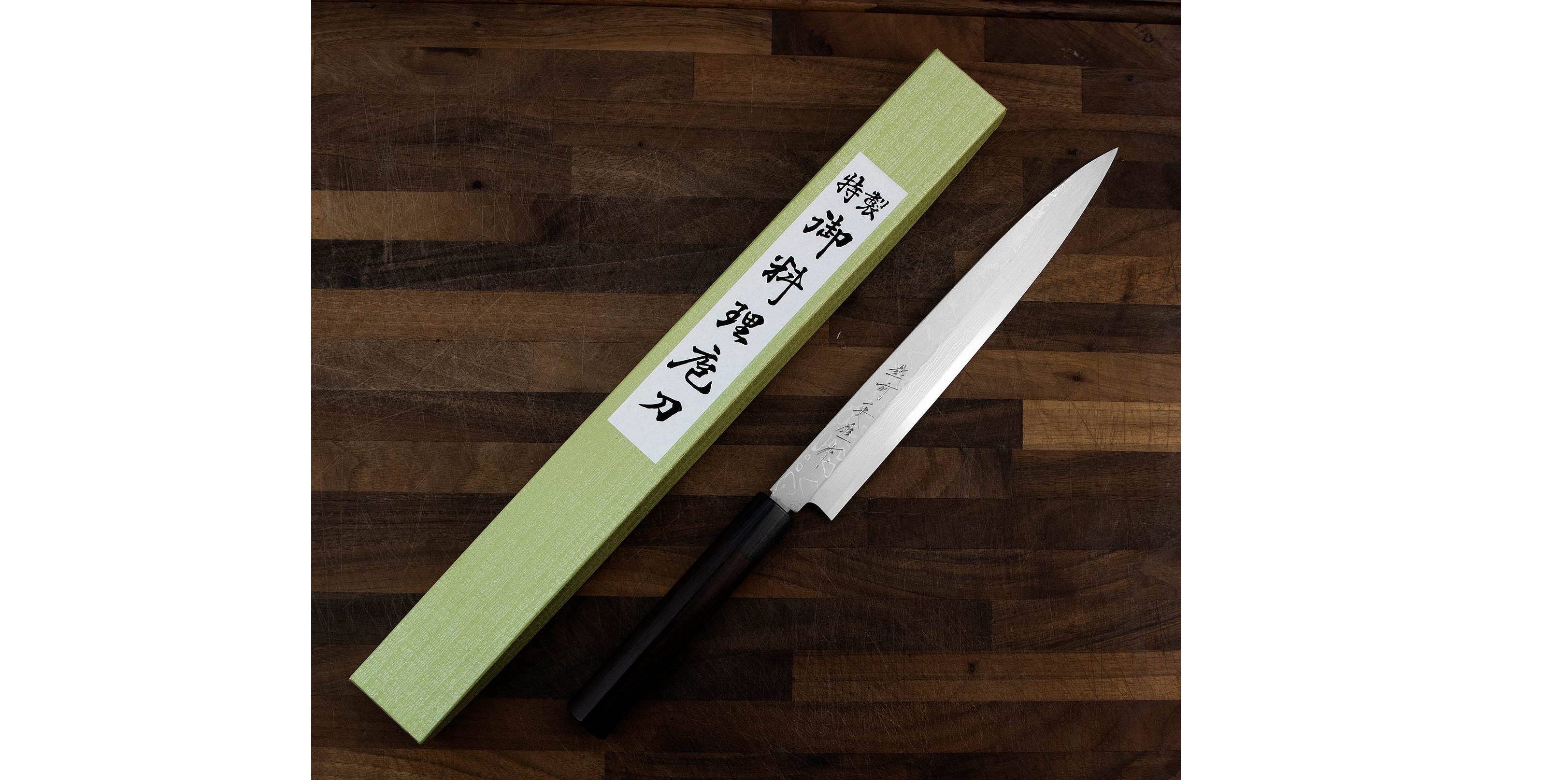 Klasyczny japoński nóż kuchenny do plastrowania o długim, wąskim i cienkim ostrzu w kształcie liścia wierzby, przeznaczony do cięcia surowych filetów rybnych na cieniutkie, niemal przezroczyste plastry. Doskonale się sprawdza podczas przygotowywania sashimi, rybnego carpaccio oraz różnych wariantów sushi. Nożem Yanagi najlepiej wykonywać jednostajny ruch w jednym kierunku: do siebie. W tym modelu krawędź grzbietu ma szlif ukośny, co zwiększa wygodę przy prowadzeniu noża palcem wskazującym.