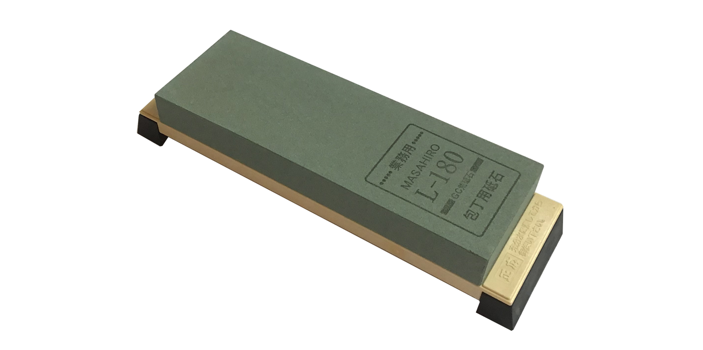 Kamień ostrzący Masahiro L-180 Rough to płaski kamień na planie prostokąta o wymiarach 210x72x27mm i gradacji (ilość ziaren, drobin ściernych na cm2) 180 wykorzystywany ostrzenia do bardzo tępych lub z uszkodzoną krawędzią tnącą noży. Niska gradacja doskonale nadaje się do szybkiego usunięcia zużytej, "starej" warstwy stali. Kamień został osadzony na podstawie z tworzywa wyposażonej w gumowe, antypoślizgowe stopki. Przed użyciem kamień powinien być umieszczony na kilka minut w wodzie a w trakcie ostrzenia nie powinien pozostawać suchy.