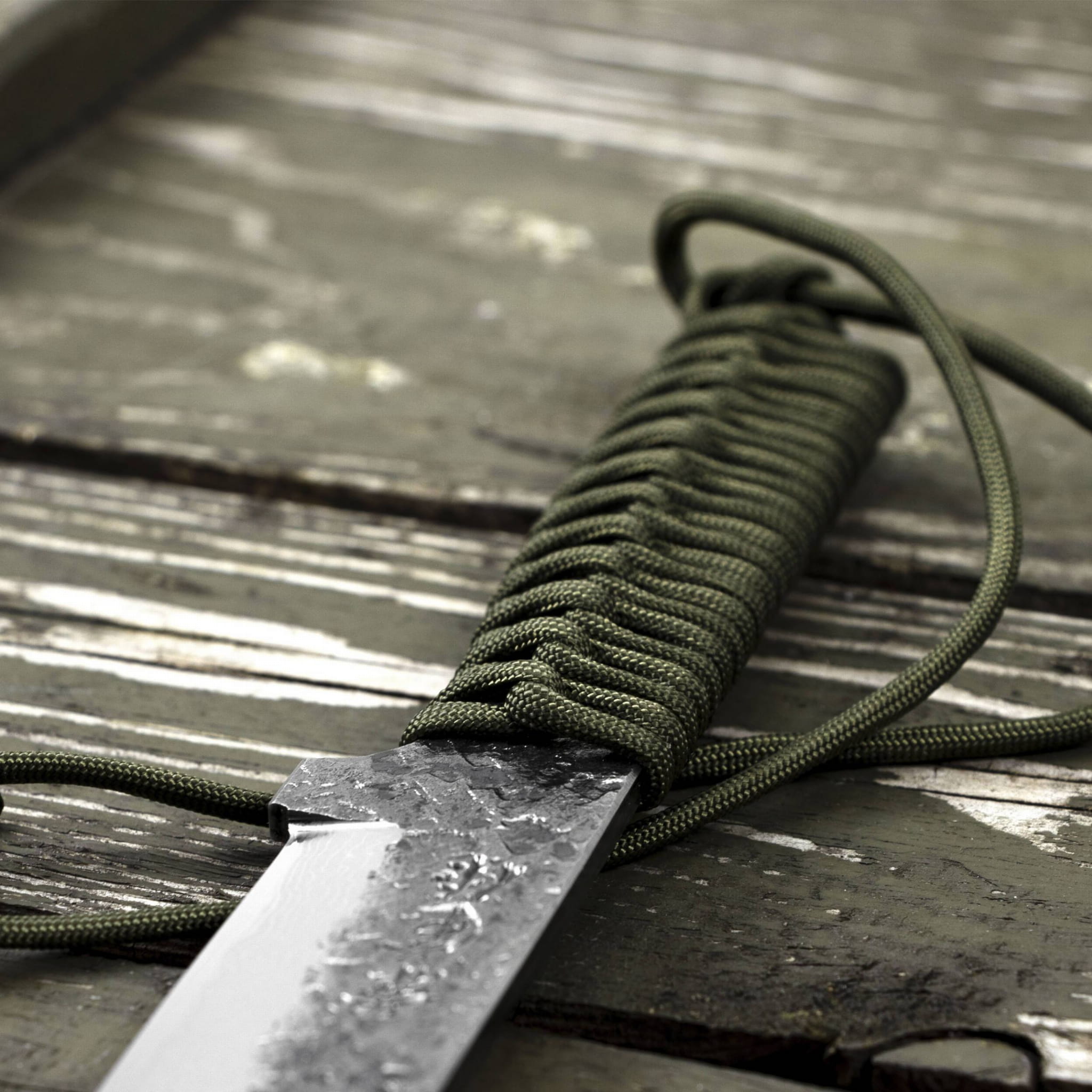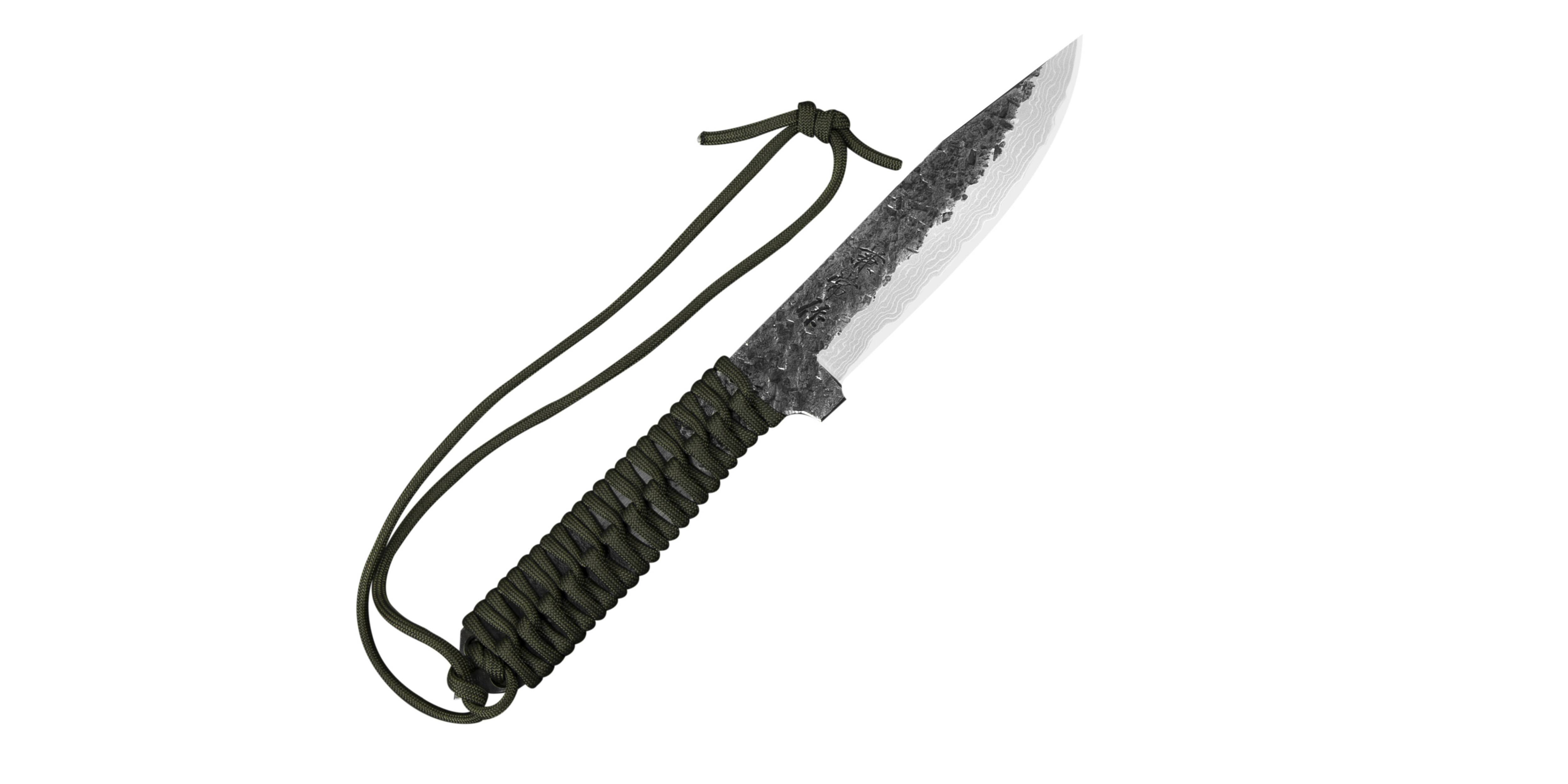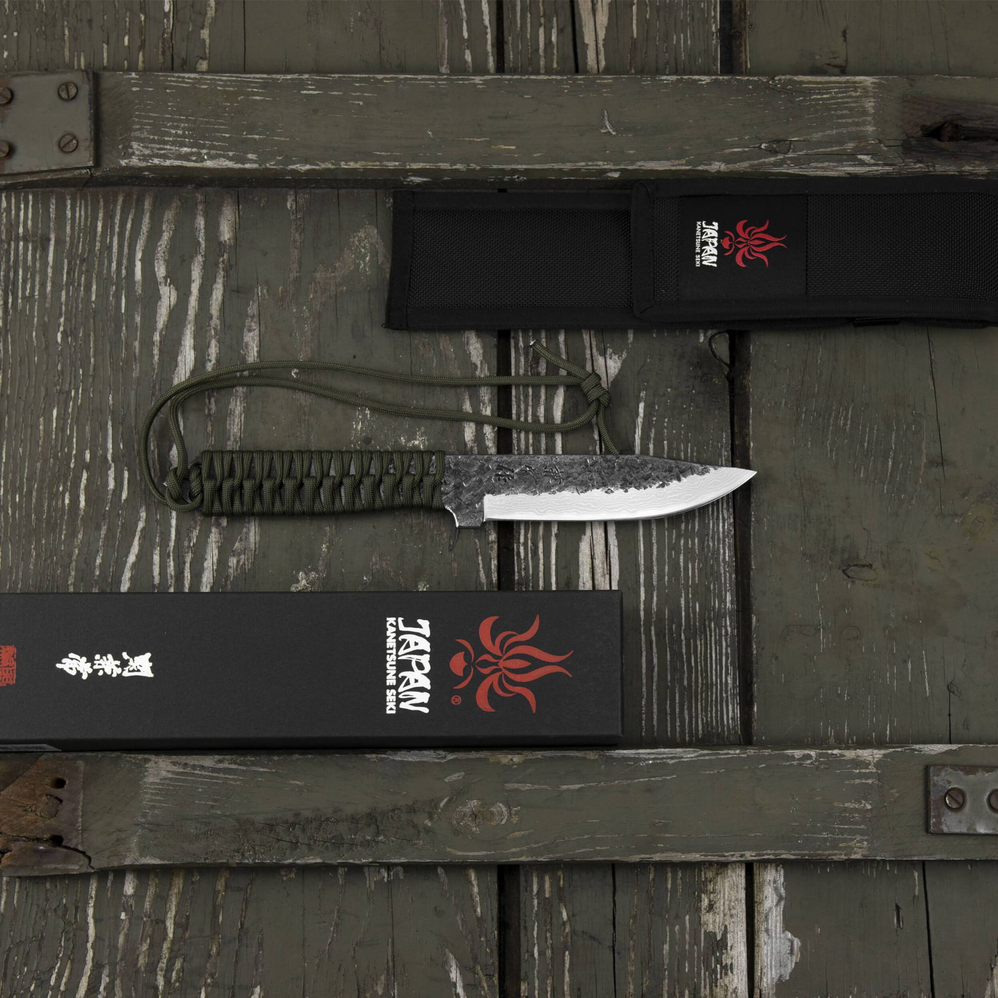 Średni obozowy nóż ze stali węglowej aogami. Dobrze sprawdzi się w zadaniach obozowych, zarówno dotyczących obróbki drewna jak i spożywczych. Rękojeść z oplotem z linki paracord sprawia że nóż pewnie leży w dłoni, a jego spłaszczony profil pozwala na dobrą kontrolę nad krawędzią. W zestawie znajduje się nylonowa pochwa pozwalająca na przenoszenie noża na pasie.