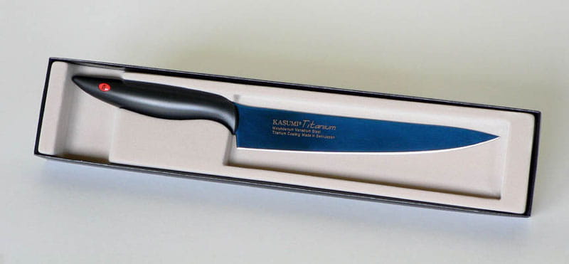 Niesamowita ostrość Kasumi Titanium została osiągnięta poprzez kombinację bardzo zaawansowanej technologii, dużej twardości stali, oraz rzemieślniczego kunsztu ludzi tworzących te profesjonalne noże kuchenne.