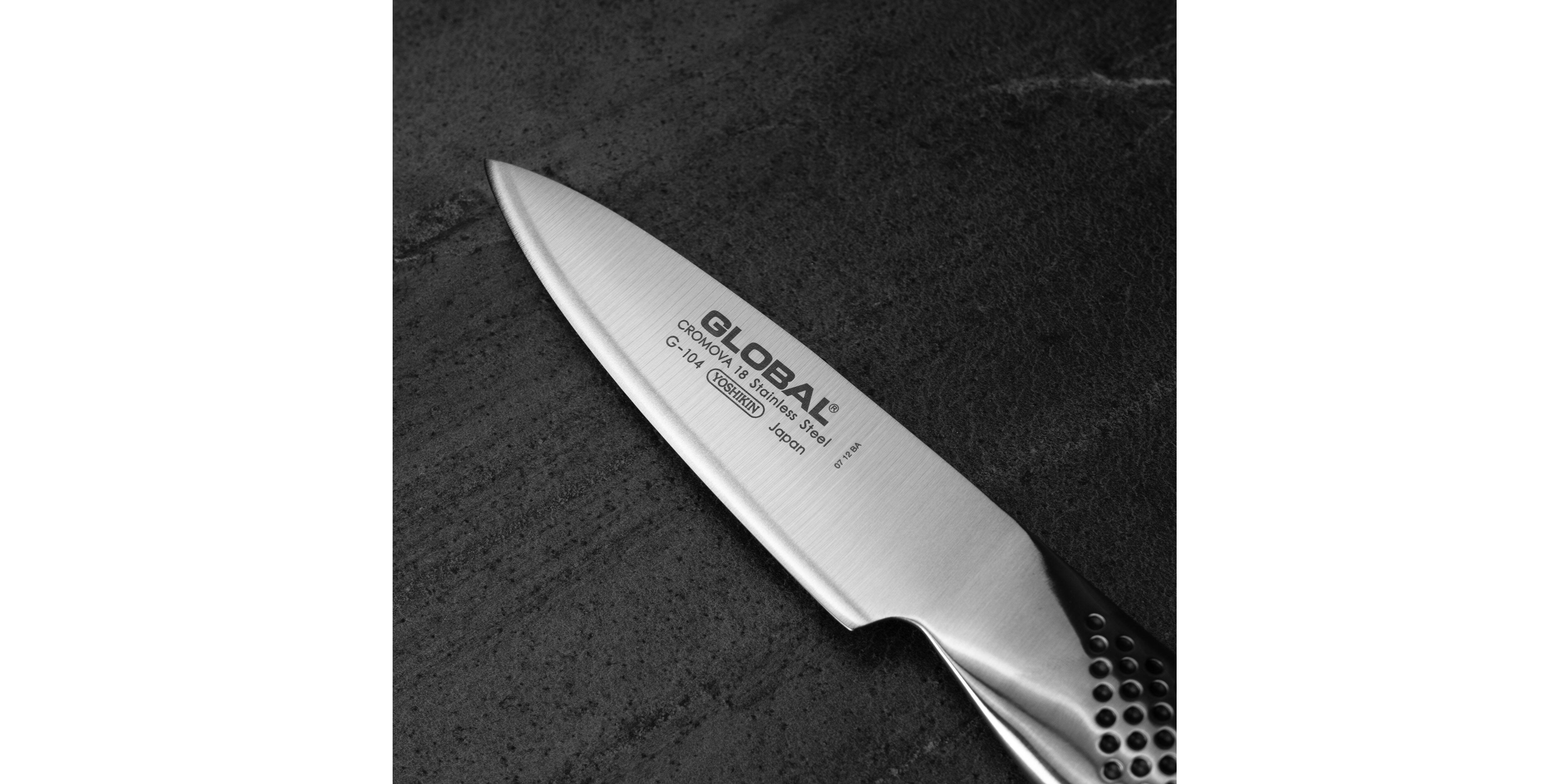 Noże kuchenne Global słyną z łączenia fenomenalnej skuteczności z eleganckim designem. Są lekkie i doskonale wyważone, a ich cienkie, twarde, wytrzymałe klingi zachowują idealną ostrość przez długi czas. Dzięki jednolitej konstrukcji noże są higieniczne, lepiej leżą w dłoni i łatwiej je wyczyścić czy naostrzyć. Indywidualnie wyważana rękojeść została tak skonstruowana, by redukować zmęczenie i nie wyślizgiwać się z rąk. Noże Global, zaprojektowane w 1985 r. przez Komina Yamadę, zdobyły wiele międzynarodowych nagród i cieszą się niesłabnącym uznaniem największych mistrzów kuchni – zarówno profesjonalistów, jak i kuchmistrzów domowych.