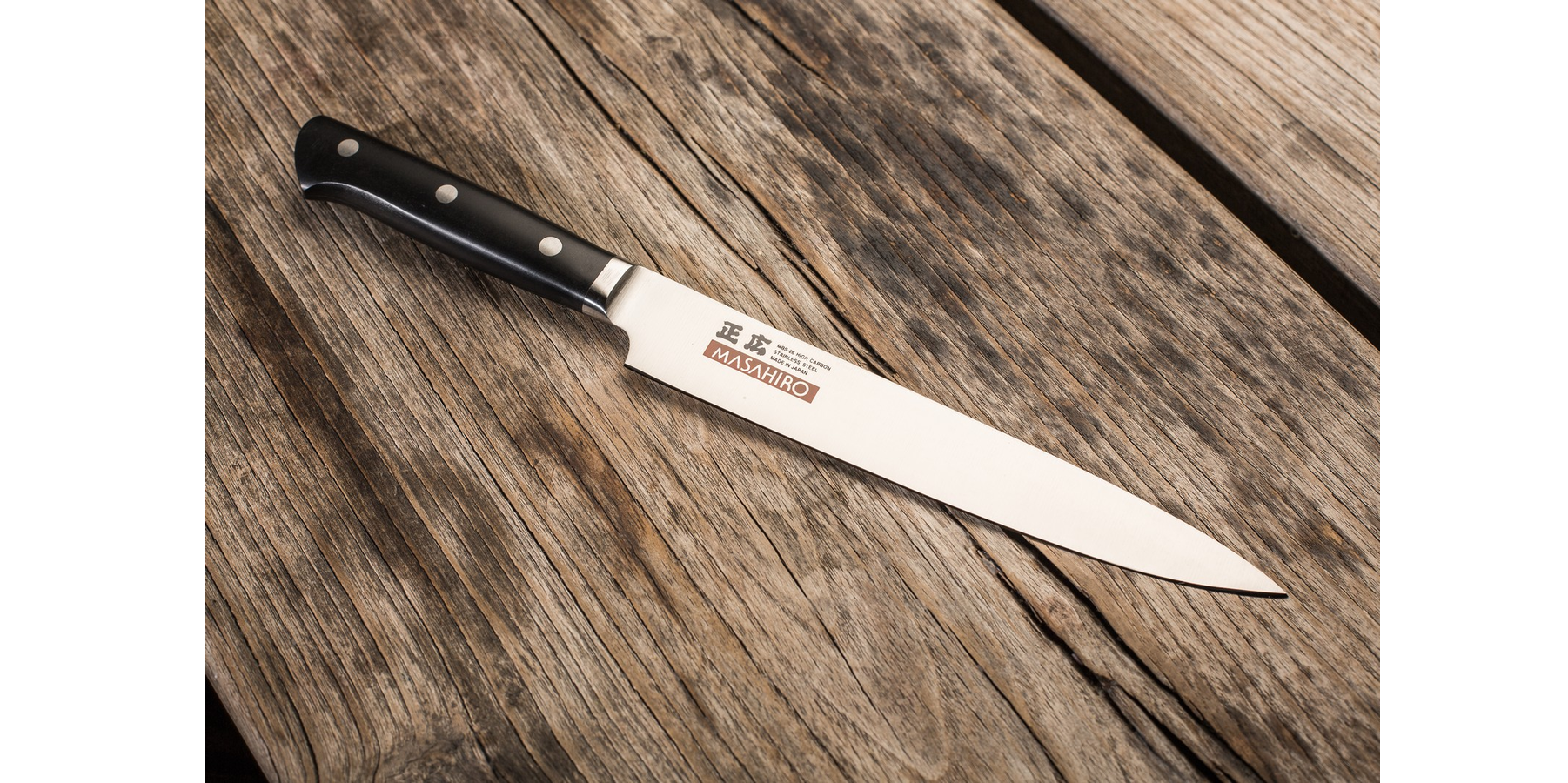 Noże z tej linii wykonane zostały z pochodnej VG-10, molibdenowo-wanadowej, wysokowęglowej, nierdzewnej stali zwanej MBS-26, która została poddana trójstopniowemu procesowi hartowania aż do osiągnięcia twardości 58-59 HRC. Każde ostrze zostało doprowadzone do perfekcji przez rzemieślników z ponad 30 letnim doświadczeniem, wynosząc noże Masahiro do poziomu niebywałej ostrości.
