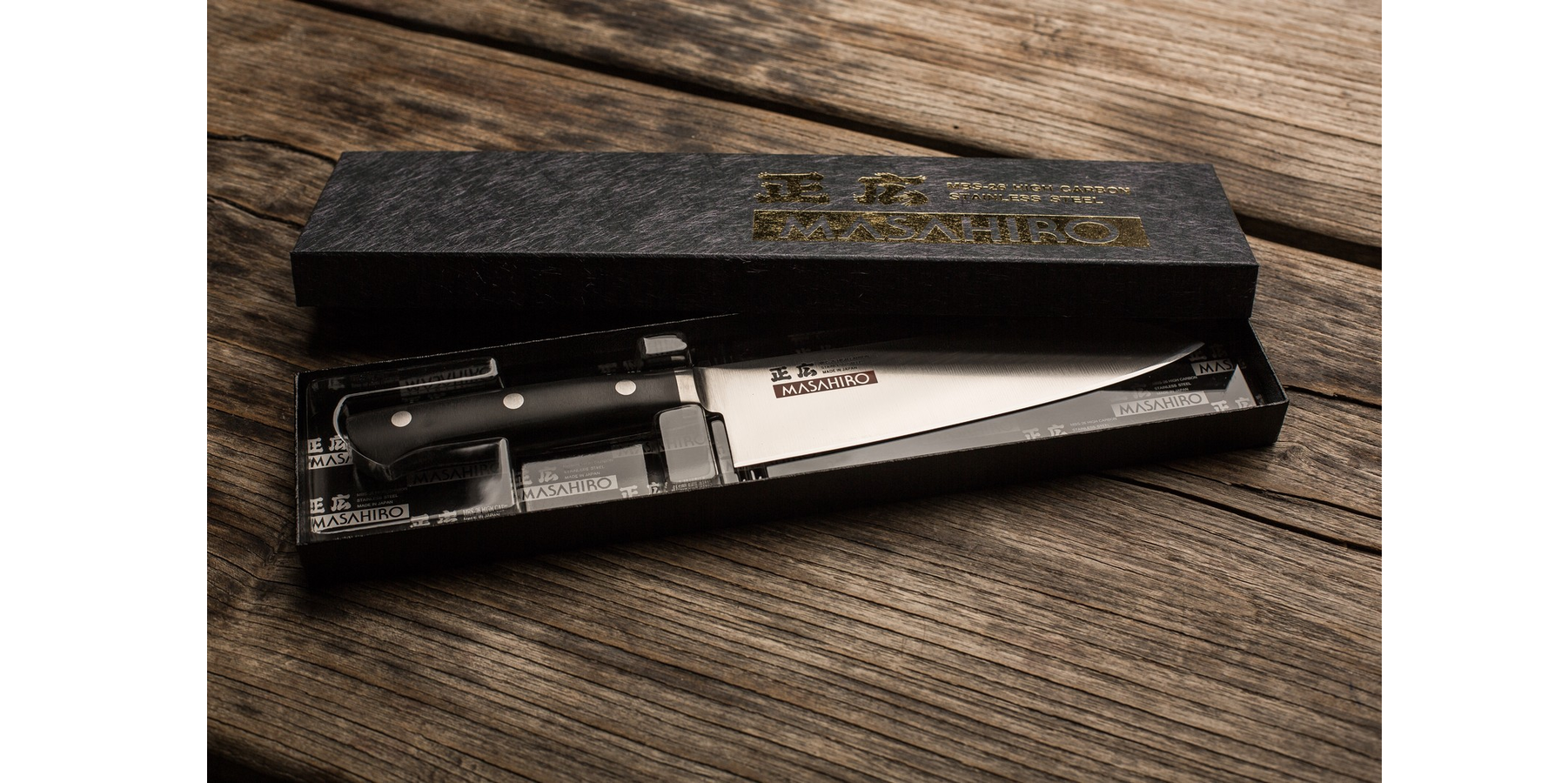 Masahiro MV-H Chef o długości ostrza 180 mm to jeden z najczęściej wybieranych noży do kuchni, zarówno przez profesjonalnych kucharzy jak i amatorów. Charakterystyczny kształt noża, wywodzący się z kuchni francuskiej wykorzystywany jest do wielu zadań kuchennych a nazwa nóż szefa kuchni, podkreśla fakt, że jest to nieodzowne narzędzie każdego kucharza. Nóż jest bardzo lekki a rękojeść pewnie leży zarówno w małych jak i dużych dłoniach. Dzięki idealnemu wyważeniu pomiędzy ostrzem a rączką pozwala na rytmiczny, bardzo wydajny, kołyszący ruch na powierzchni podczas krojenia w plastry lub siekania różnych produktów.