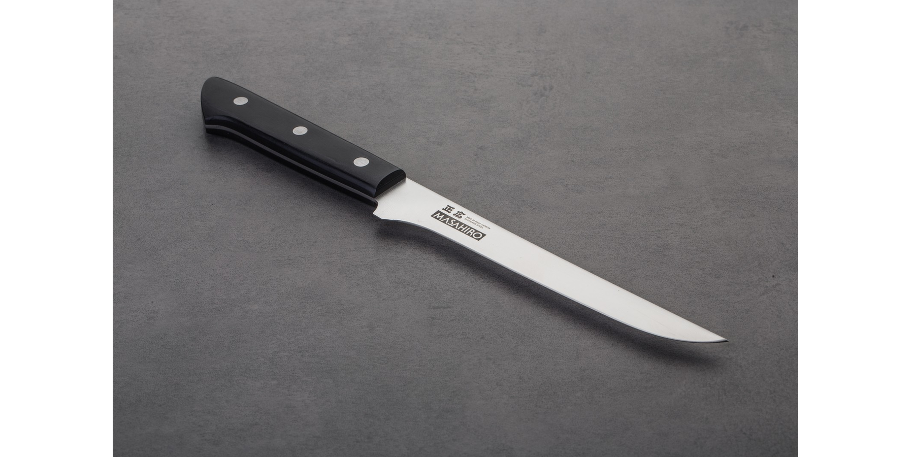 Masahiro MV-L Boning o długości ostrza 160 mm to nóż przeznaczony do luzowania o charakterystycznym bardzo wąskim ostrzu z okrągło zakończonym czubkiem zaprojektowanym tak, aby można było nim łatwo manewrować wokół kości, pomiędzy stawami i wśród ścięgien i chrząstek surowego mięsa. Te cechy sprawiają, że nóż do luzowania jest niezbędny do wykonywania tego typu czynności w każdej kuchni, co jest bardziej opłacalne niż kupowanie zluzowanego mięsa. Do luzowania drobiu i ryb lepiej nadaje się nóż o elastyczny ostrzu (flexible), natomiast do mięsa czerwonego taki z ostrzem sztywniejszym. Nóż do luzowania w razie konieczności, szczególnie ten z elastycznym ostrzem można wykorzystać również do filetowania.