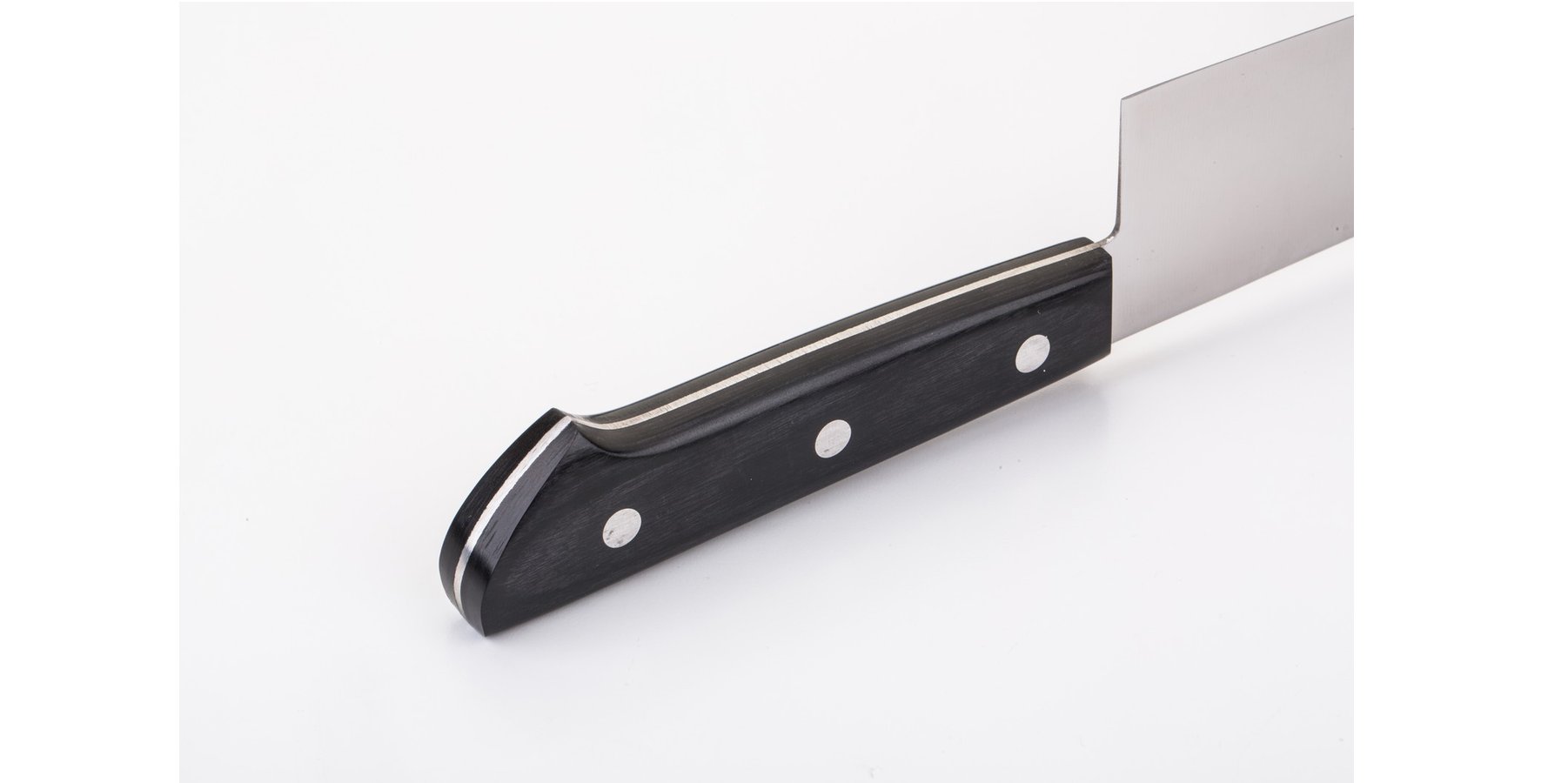 Masahiro MV-L Chef o długości ostrza 180 mm to jeden z najczęściej wybieranych noży do kuchni, zarówno przez profesjonalnych kucharzy jak i amatorów. Charakterystyczny kształt noża, wywodzący się z kuchni francuskiej wykorzystywany jest do wielu zadań kuchennych a nazwa nóż szefa kuchni, podkreśla fakt, że jest to nieodzowne narzędzie każdego kucharza. Nóż jest bardzo lekki a rękojeść pewnie leży zarówno w małych jak i dużych dłoniach. Dzięki idealnemu wyważeniu pomiędzy ostrzem a rączką pozwala na rytmiczny, bardzo wydajny, kołyszący ruch na powierzchni podczas krojenia w plastry lub siekania różnych produktów.