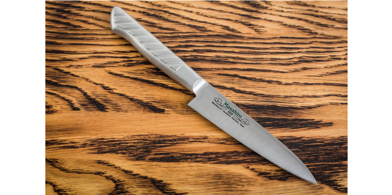 Uniwersalny nóż Masahiro MV-S Utility o ostrzu długości 120 mm jest mniejszą wersja noża szefa kuchni. Stosunkowo krótkie ostrze może być również wykorzystane do obierania. Wszechstronne zastosowanie tego noża, czynią go niezbędnym elementem wyposażenia kuchni.