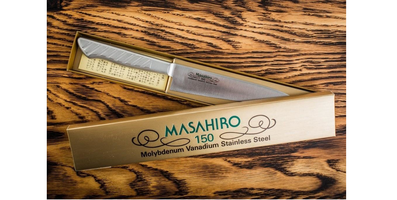 Uniwersalny nóż Masahiro MV-S Utility o ostrzu długości 150 mm jest mniejszą wersja noża szefa kuchni. Jego wszechstronne zastosowanie, sprawdzające się wszędzie tam gdzie nóż szefa jest za duży, czynią go niezbędnym elementem wyposażenia kuchni.