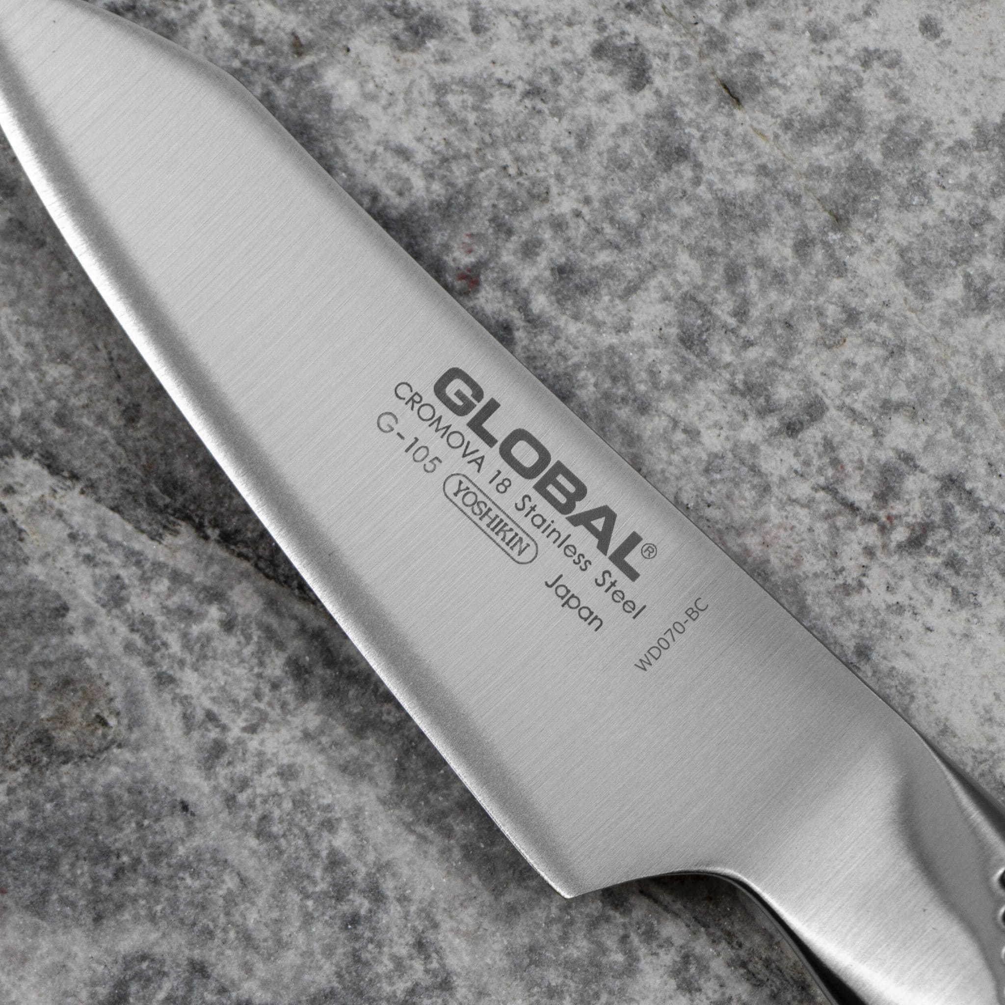 Cromova 18 to stal ekskluzywna dla noży marki Global, opatentowana przez hutę Yoshikin. Bardzo wysoka zawartość chromu, klasyfikuje tą stal w kategorii nierdzewnych. Proces hartowania przebiega przez podgrzanie klingi do 1000 stopni Celsjusza a następnie ochłodzeniu do -80. W ten sposób uzyskuje się twardość na poziomie 56-58 HRC. To stal odpowiednia zarówno dla nowicjuszy jaki i profesjonalistów.