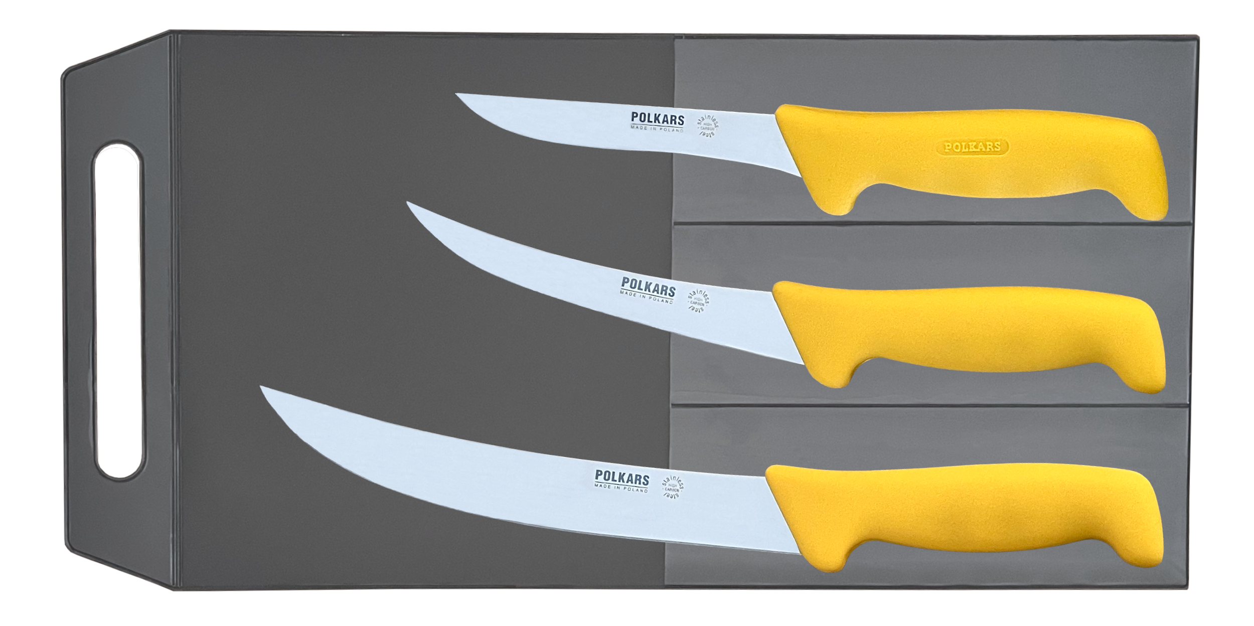 Polkars zestaw 3 noży (modele 01, 02, 23) żółty