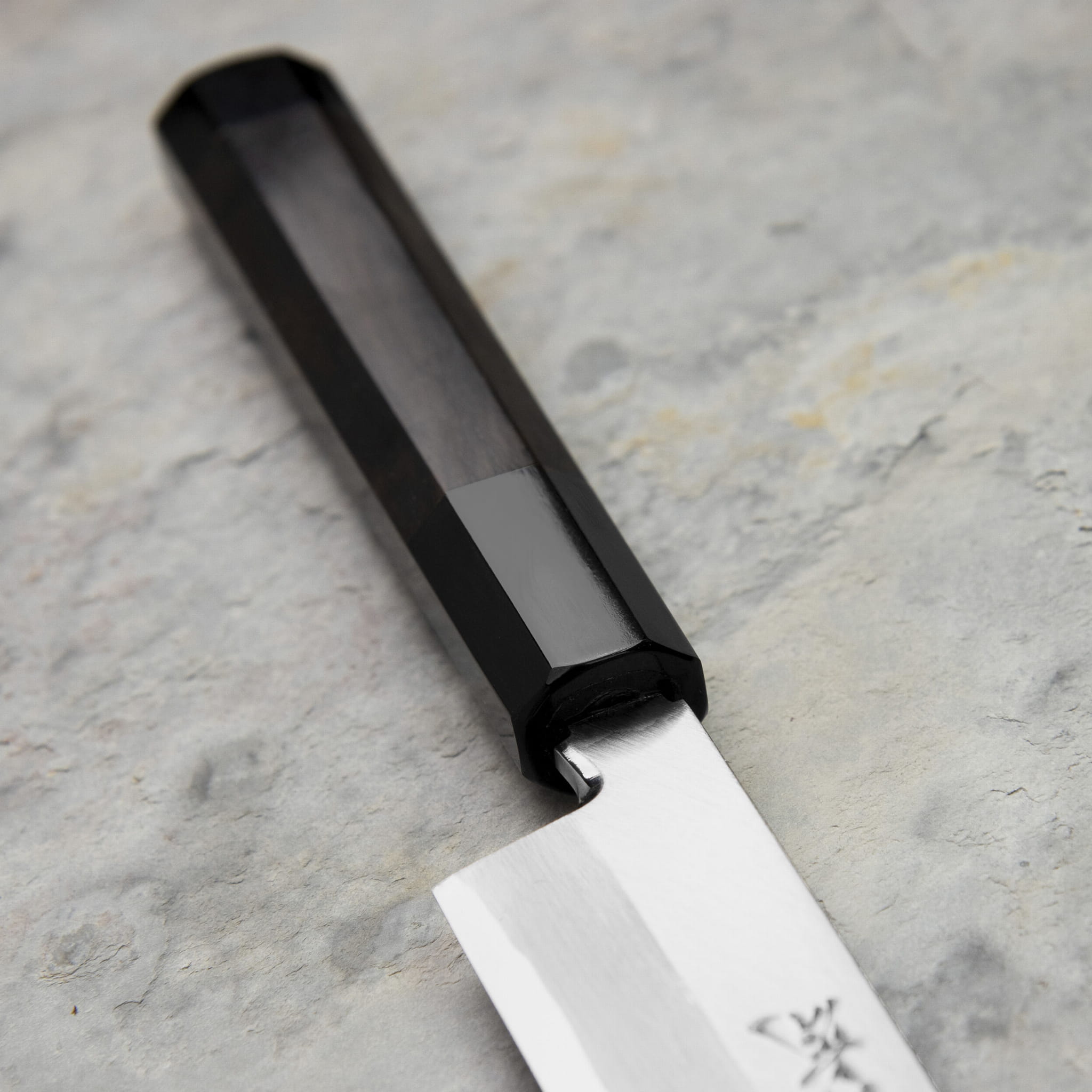Nóż do sashimi (Yanagi) to tradycyjny japoński nóż, który służy do krojenia świeżych filetów na niemal przezroczyste plastry. Znakomicie się sprawdza podczas przygotowywania sushi, rybnego carpaccio oraz innych potraw z bardzo delikatnych składników. Długie, wąskie i sztywne ostrze zapewnia drobiazgową precyzję, a jednostronny szlif – czyste cięcie. Nożem Yanagi najlepiej wykonywać jednostajny ruch w jednym kierunku: do siebie.