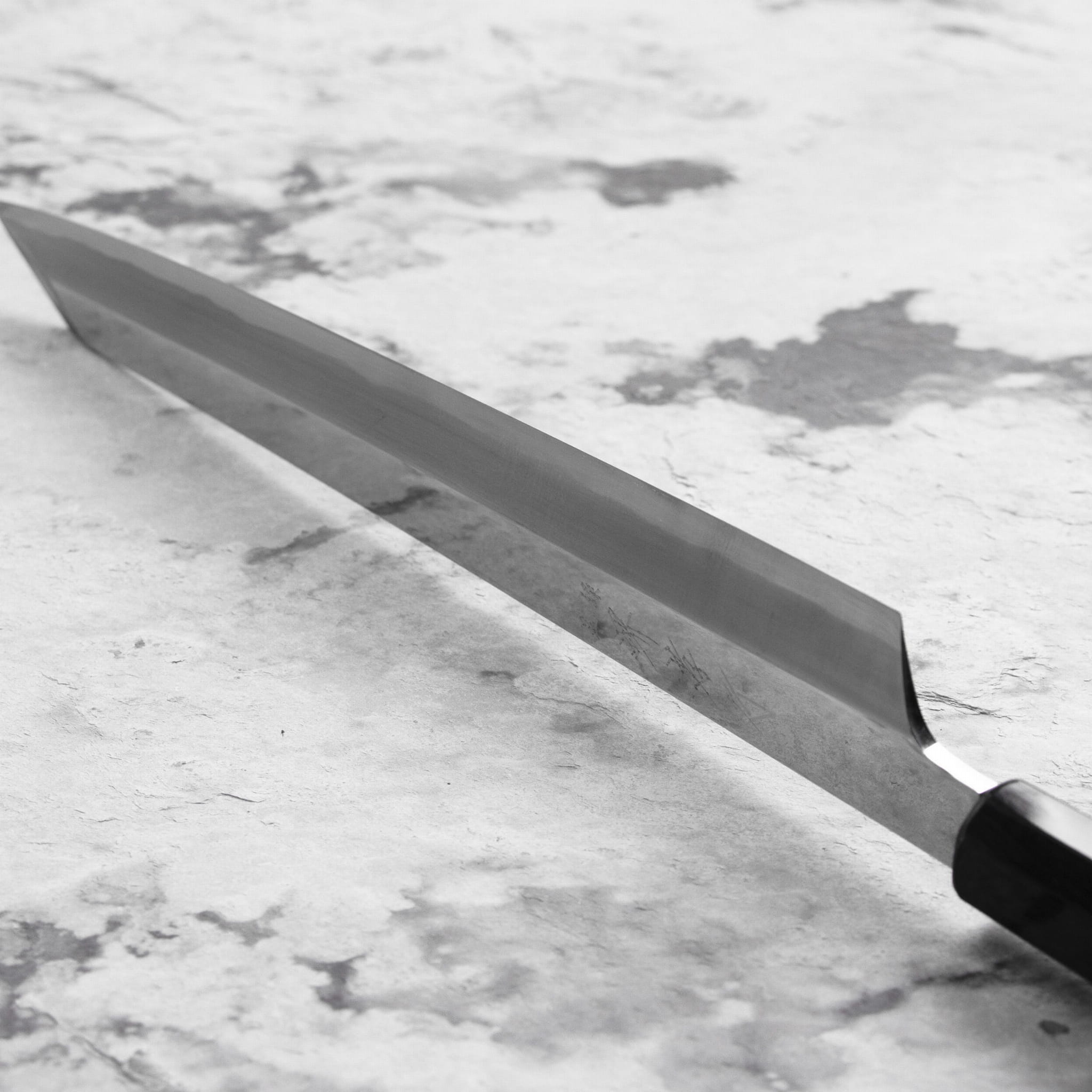 Tradycyjne, japońskie noże kuchenne wykonywane są ze stali węglowej (stop żelaza i węgla). Duża zawartość węgla w składzie chemicznym sprawia, że nie jest to najłatwiejsza stal w kwestii pielęgnacji, a nieprzestrzeganie zalecanych wytycznych może spowodować nieodwracalne uszczerbki. Podstawową zasadą konserwacji noży ze stali rdzewnej jest wycieranie ich do sucha po zakończonej czynności. Pozostawienie noża do samodzielnego wyschnięcia doprowadzi do pojawienia się rdzy na klindze. Przy przechowywaniu noży ze stali węglowej trzeba pamiętać, że wilgoć wpływa na nie negatywnie i przed schowaniem do szuflady, bloku czy pozostawieniem na listwie magnetycznej należy je wcześniej wysuszyć.