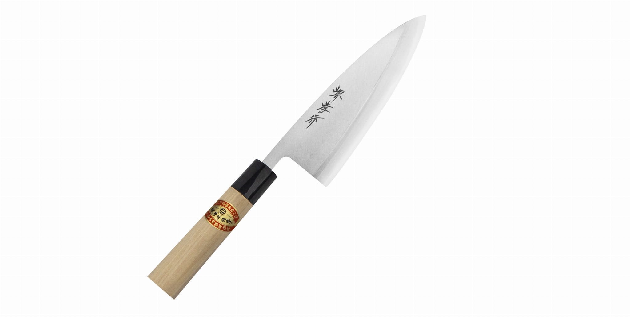 Tradycyjny japoński nóż z grubą, zwężającą się klingą, który służy do odgławiania i filetowania ryb w taki sposób, żeby nie uszkodzić ich delikatnego mięsa. W Japonii bywa często używany do sprawiania mięsa drobiowego, ale nie jest klasycznym tasakiem i nie powinno się nim mocno uderzać. Aby przeciąć ość, wystarczy lekko nacisnąć grzbiet noża i wykonać szybkie, precyzyjne cięcie. Ostry czubek i krótkie ostrze ułatwiają kontrolę ruchów, co jest szczególnie ważne, gdy trzeba dostać się nożem do ciasnych miejsc.