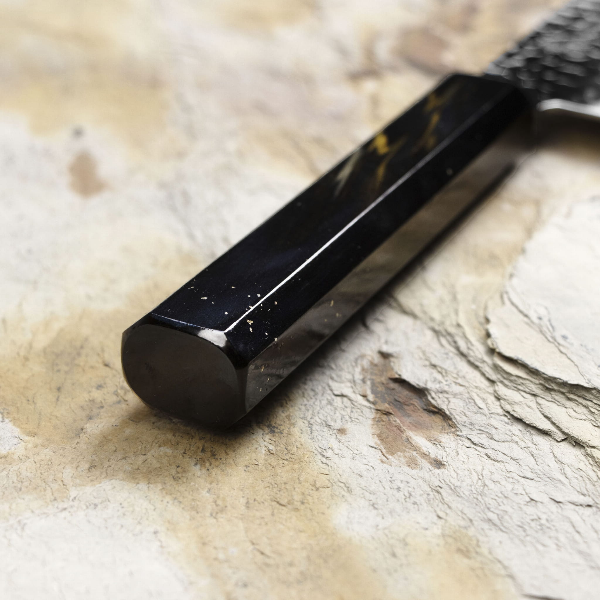 Wielofunkcyjny japoński nóż kuchenny, przeznaczony do krojenia warzyw, mięsa i ryb. Posiada obniżony czubek, który znacznie ułatwia szatkowanie, oraz szerokie ostrze, na które można zgarnąć pokrojone produkty, żeby je przenieść np. do sałatki. Doskonale się sprawdza w każdych warunkach pracy, ponieważ dzięki wysoko położonej rękojeści palce nie dotykają deski ani jedzenia.
