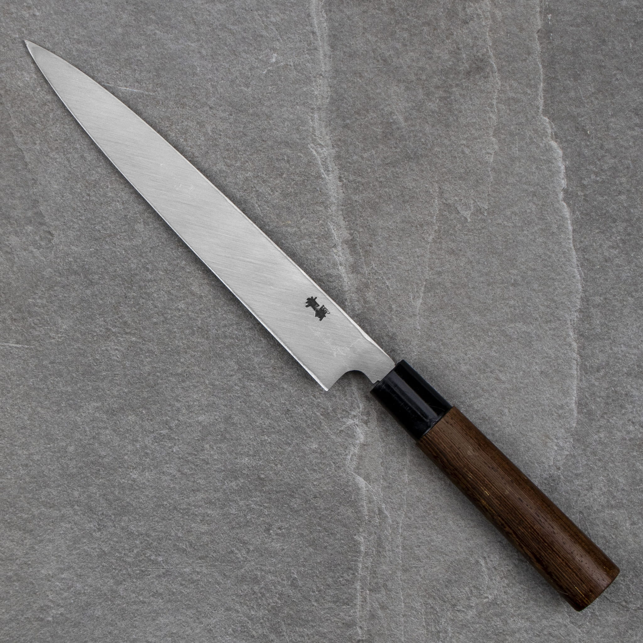 Nóż do sashimi (Yanagi) to tradycyjny japoński nóż, który służy do krojenia świeżych filetów na niemal przezroczyste plastry. Znakomicie się sprawdza podczas przygotowywania sushi, rybnego carpaccio oraz innych potraw z bardzo delikatnych składników. Długie, wąskie i sztywne ostrze zapewnia drobiazgową precyzję, a jednostronny szlif – czyste cięcie. Nożem Yanagi najlepiej wykonywać jednostajny ruch w jednym kierunku: do siebie.