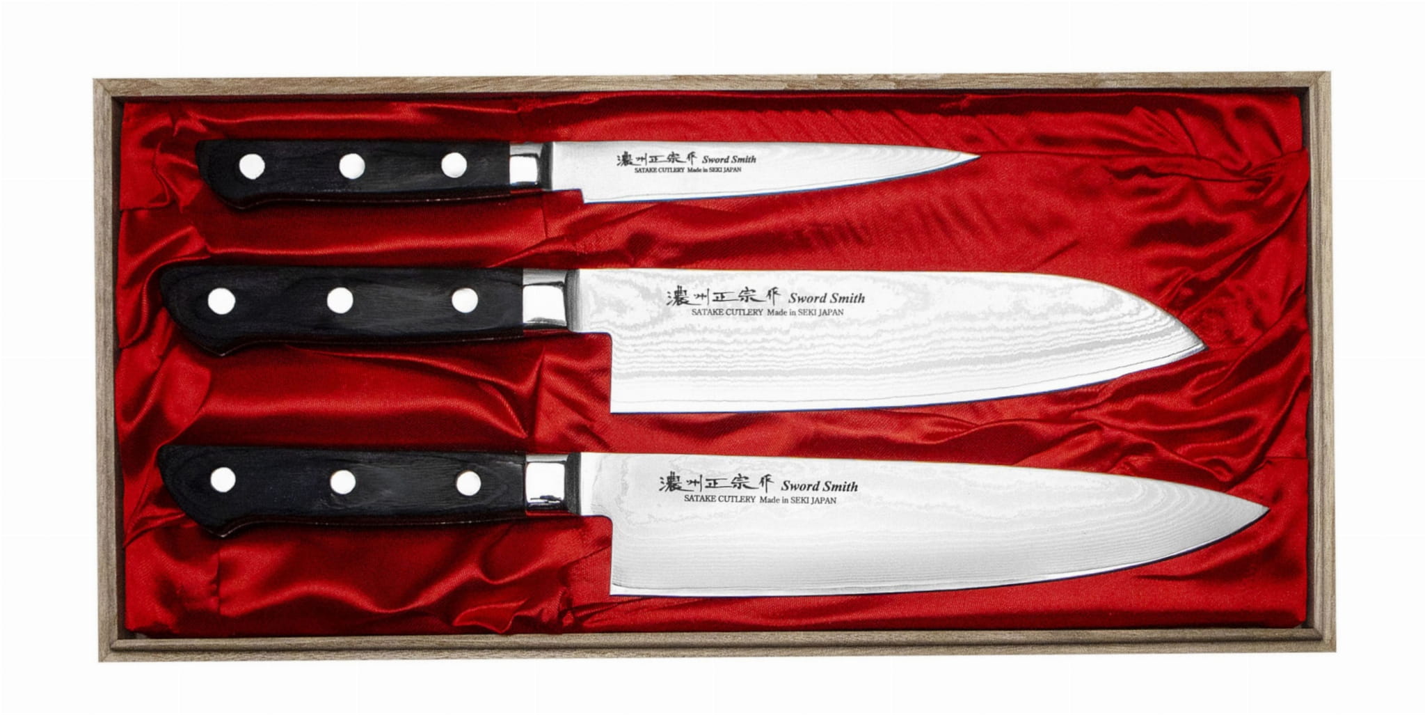 Zestaw 3 noży kuchennych Satake Daichi w drewnianym pudełku