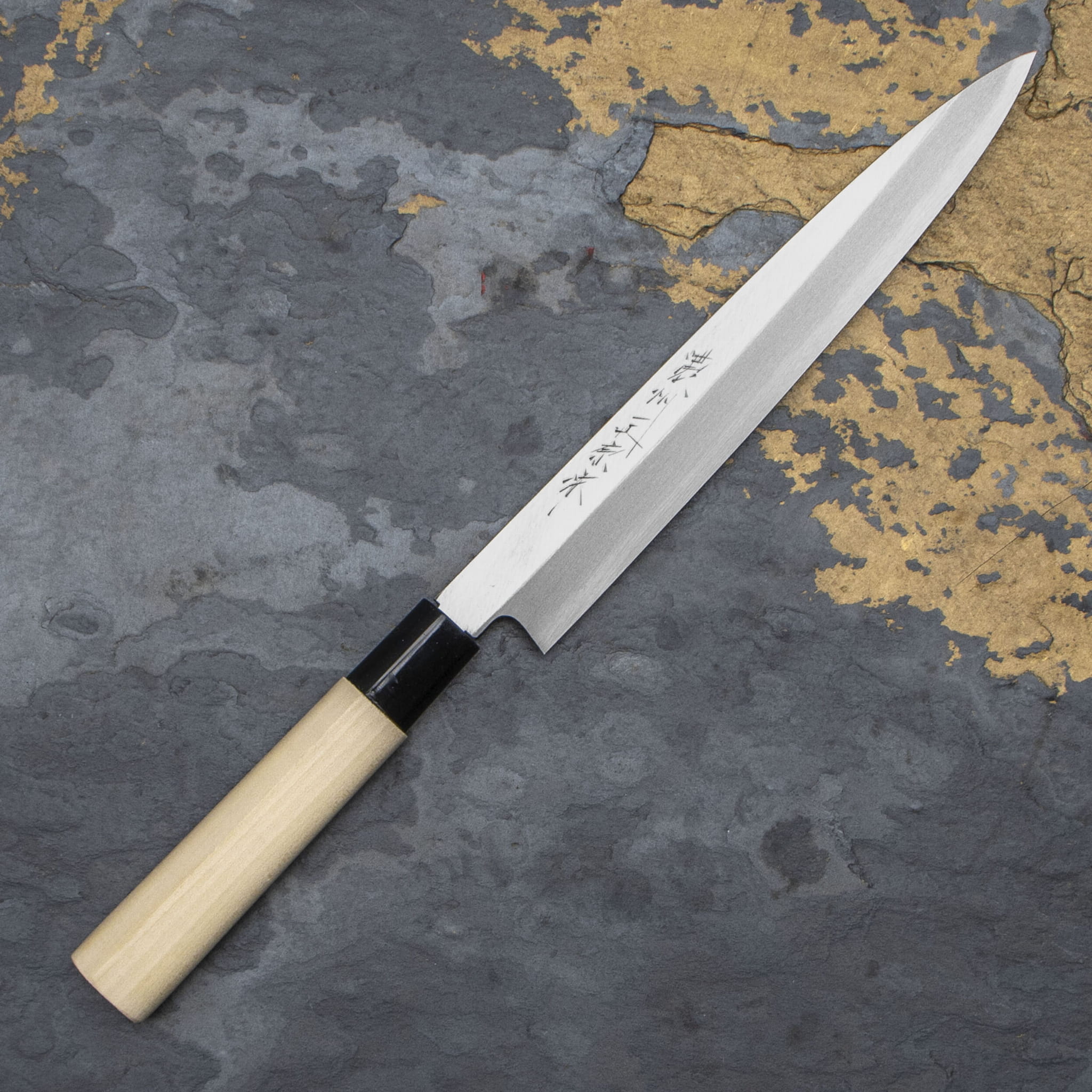 Nóż do sashimi (Yanagi) to tradycyjny japoński nóż, który służy do krojenia świeżych filetów na niemal przezroczyste plastry. Znakomicie się sprawdza podczas przygotowywania sushi, rybnego carpaccio oraz innych potraw z bardzo delikatnych składników. Długie, wąskie i sztywne ostrze zapewnia drobiazgową precyzję, a jednostronny szlif – czyste cięcie. Nożem Yanagi najlepiej wykonywać jednostajny ruch w jednym kierunku: do siebie.