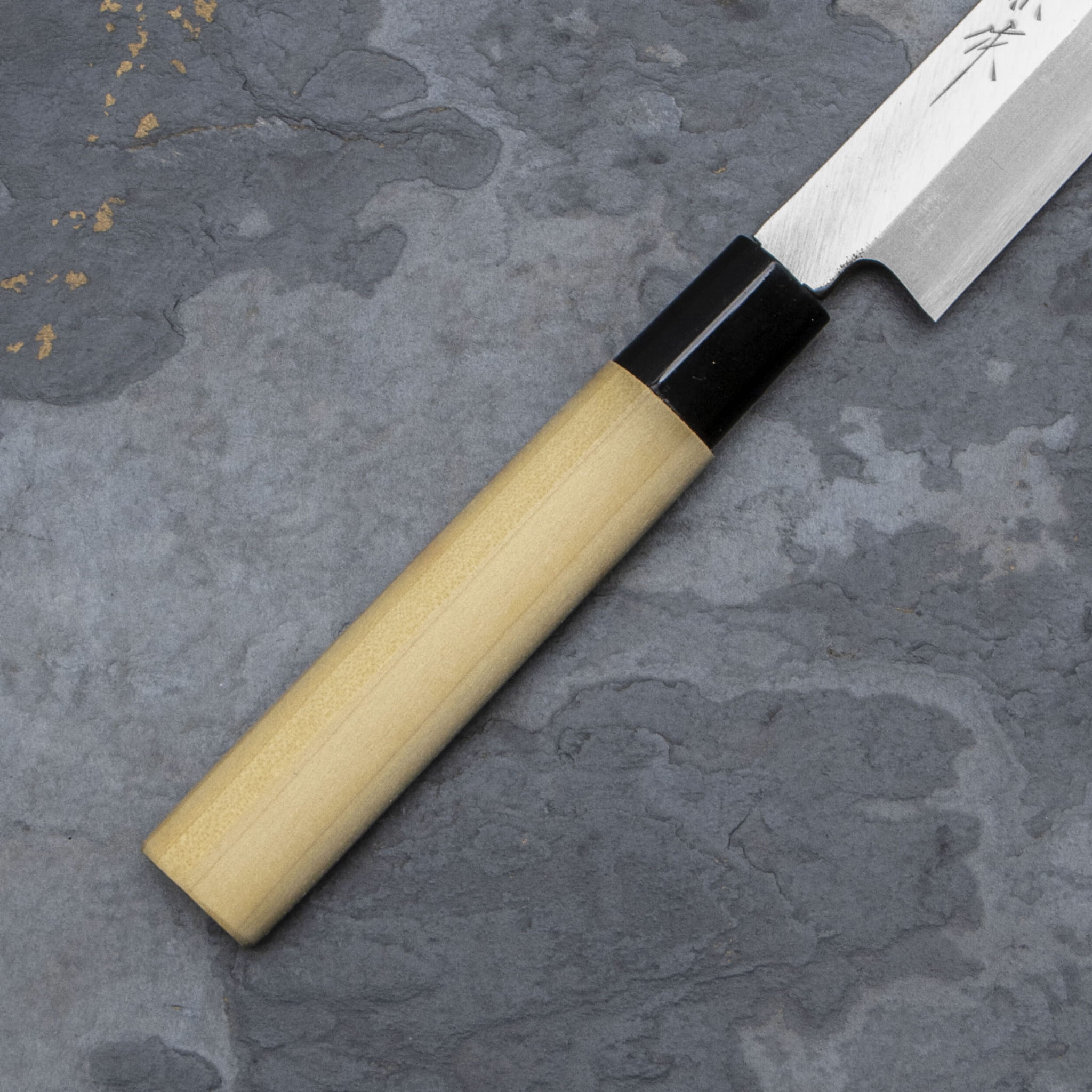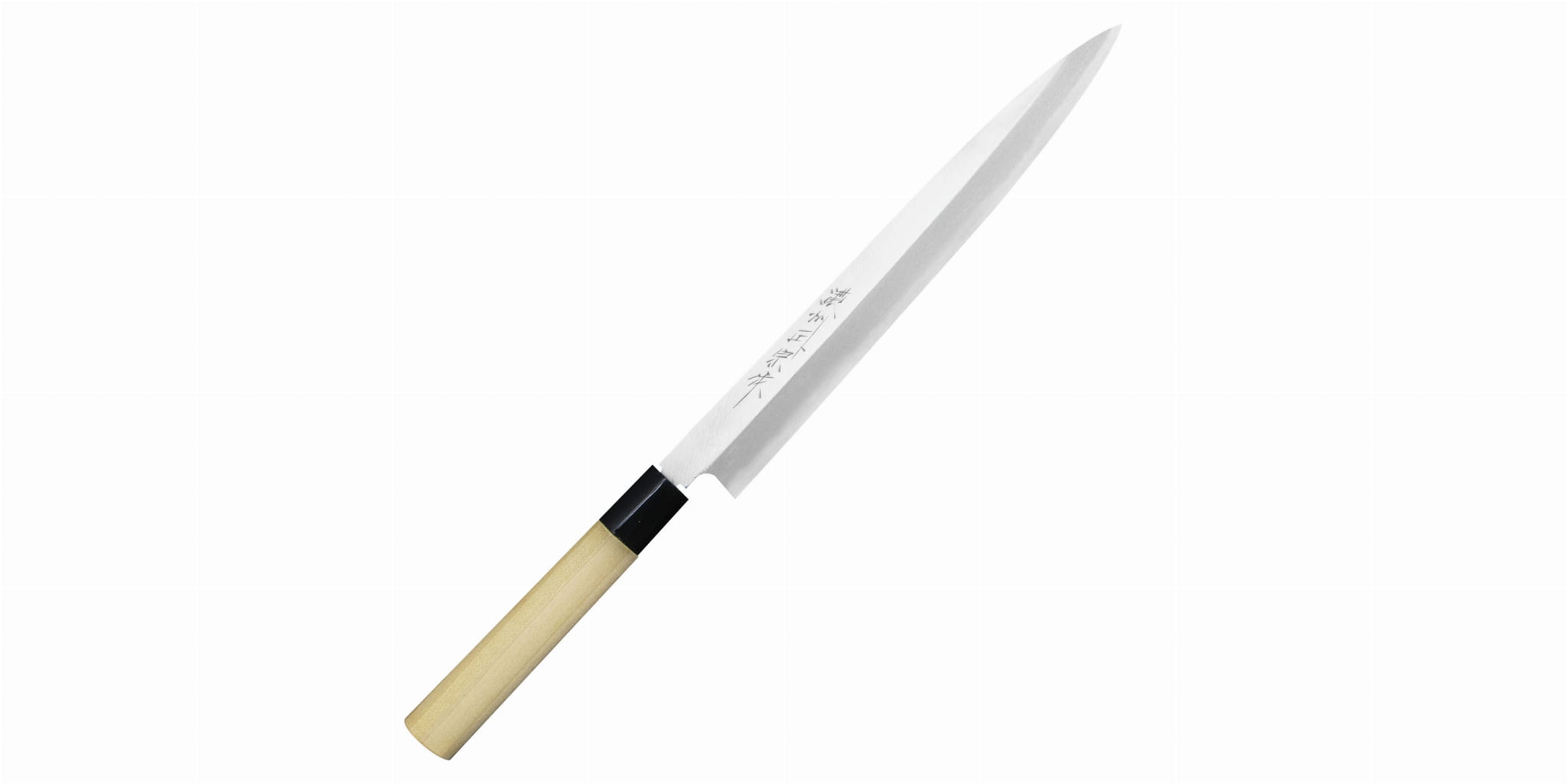 Nóż do sashimi (Yanagi) to tradycyjny japoński nóż, który służy do krojenia świeżych filetów na niemal przezroczyste plastry. Znakomicie się sprawdza podczas przygotowywania sushi, rybnego carpaccio oraz innych potraw z bardzo delikatnych składników. Długie, wąskie i sztywne ostrze zapewnia drobiazgową precyzję, a jednostronny szlif – czyste cięcie. Nożem Yanagi najlepiej wykonywać jednostajny ruch w jednym kierunku: do siebie.