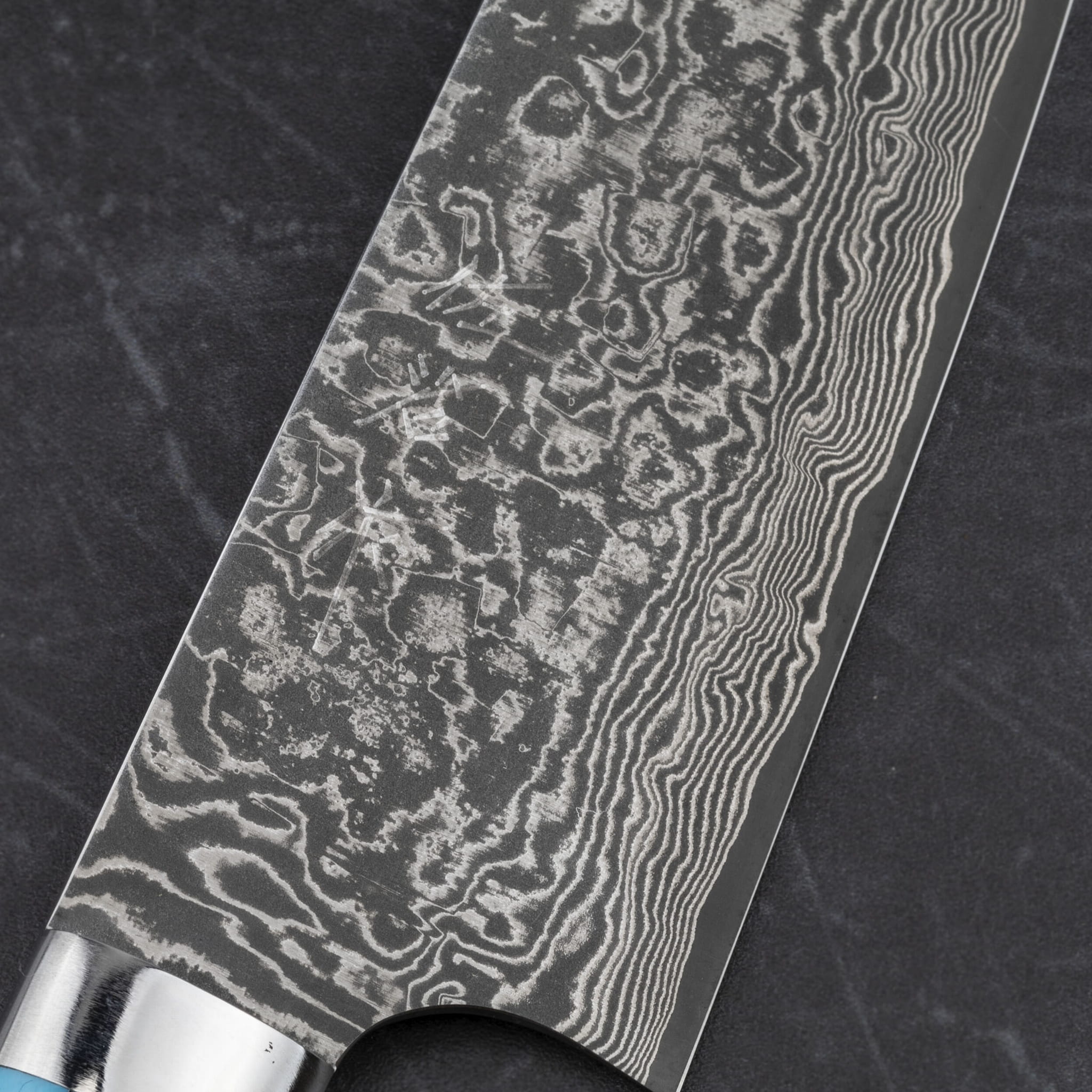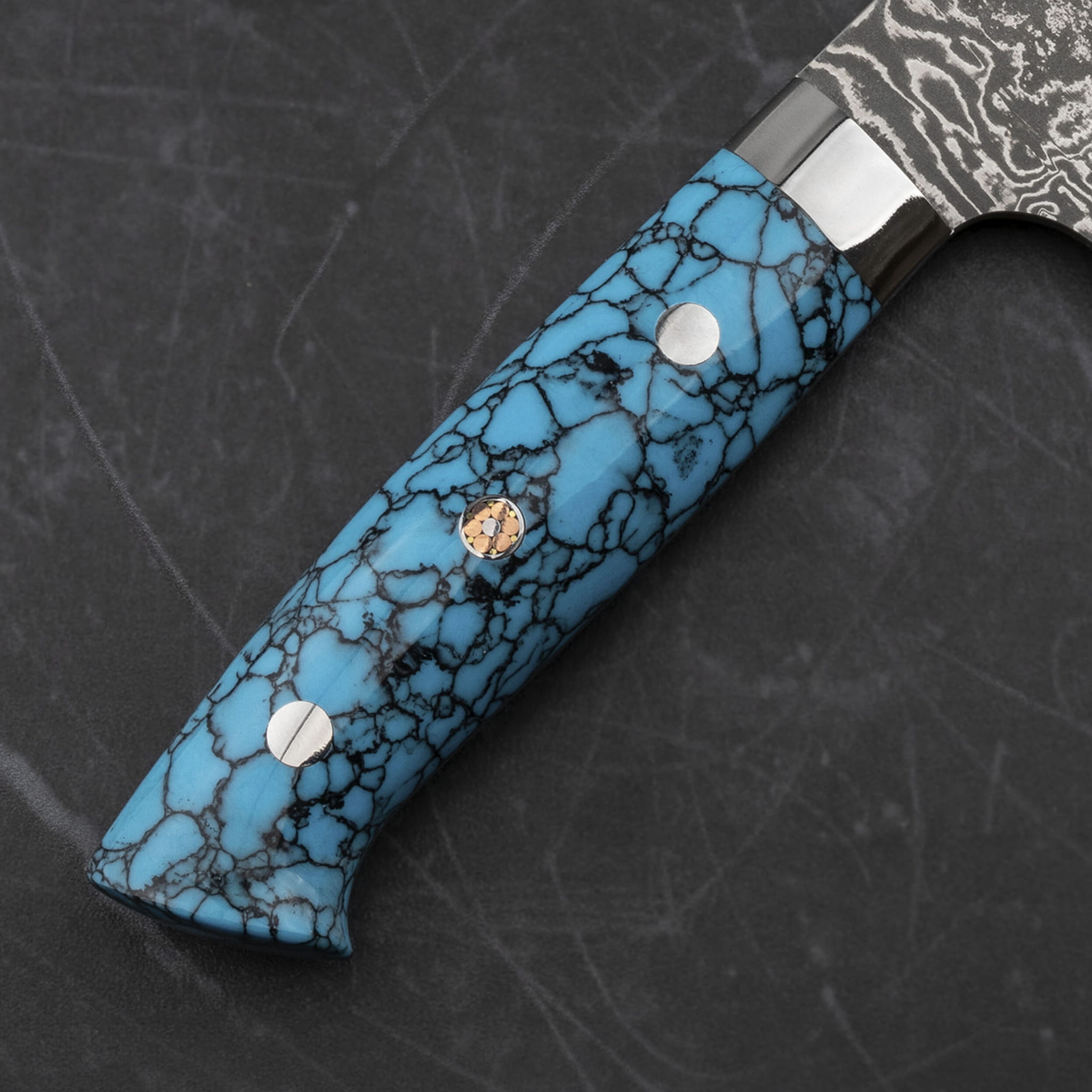 Rękojeść – niebieski turkus ze stalowym bolsterem wykończonym na wysoki połysk