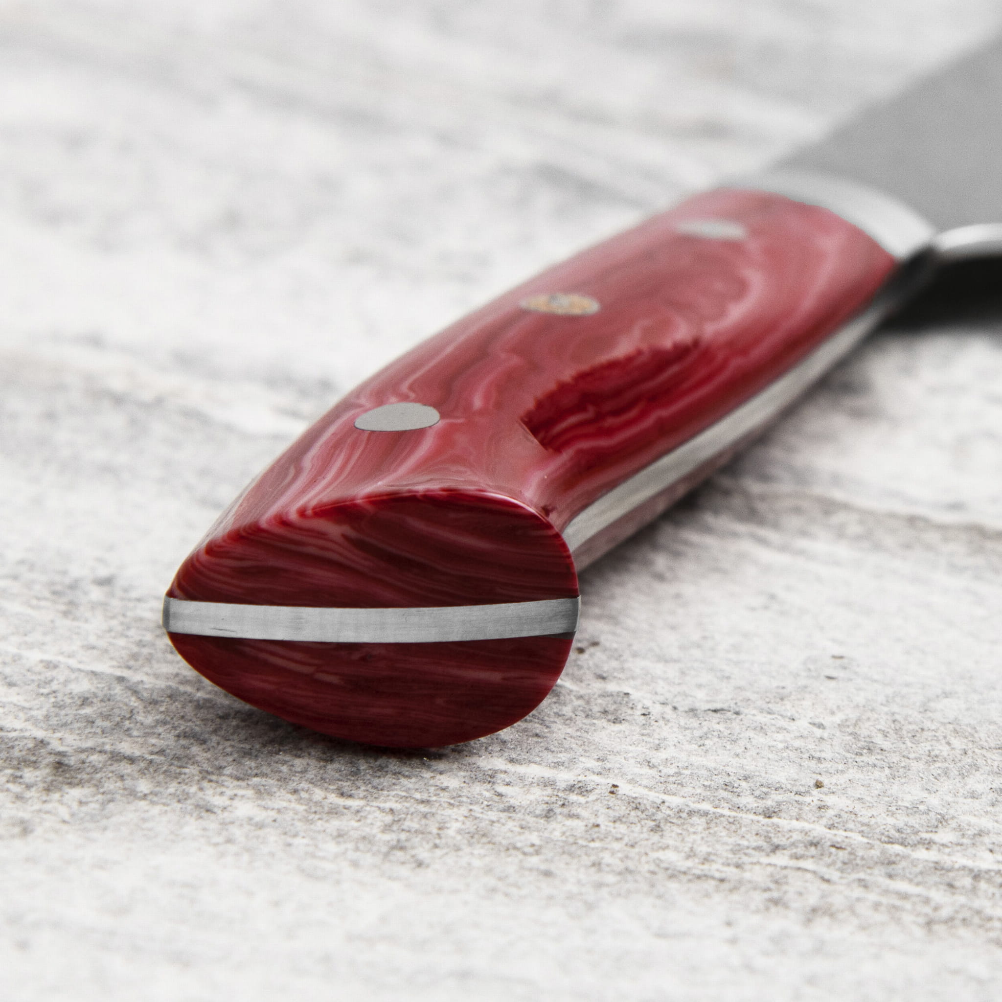 Najbardziej wszechstronny nóż kuchenny, przeznaczony do krojenia, siekania, szatkowania i plastrowania rozmaitych produktów. Nóż szefa kuchni we wprawnych rękach poradzi sobie nawet z porcjowaniem drobiu, usuwaniem kości z mięsa czy filetowaniem ryb. Długość ostrza pozwala kroić większe płaszczyzny i gwarantuje pełną kontrolę nad nożem.