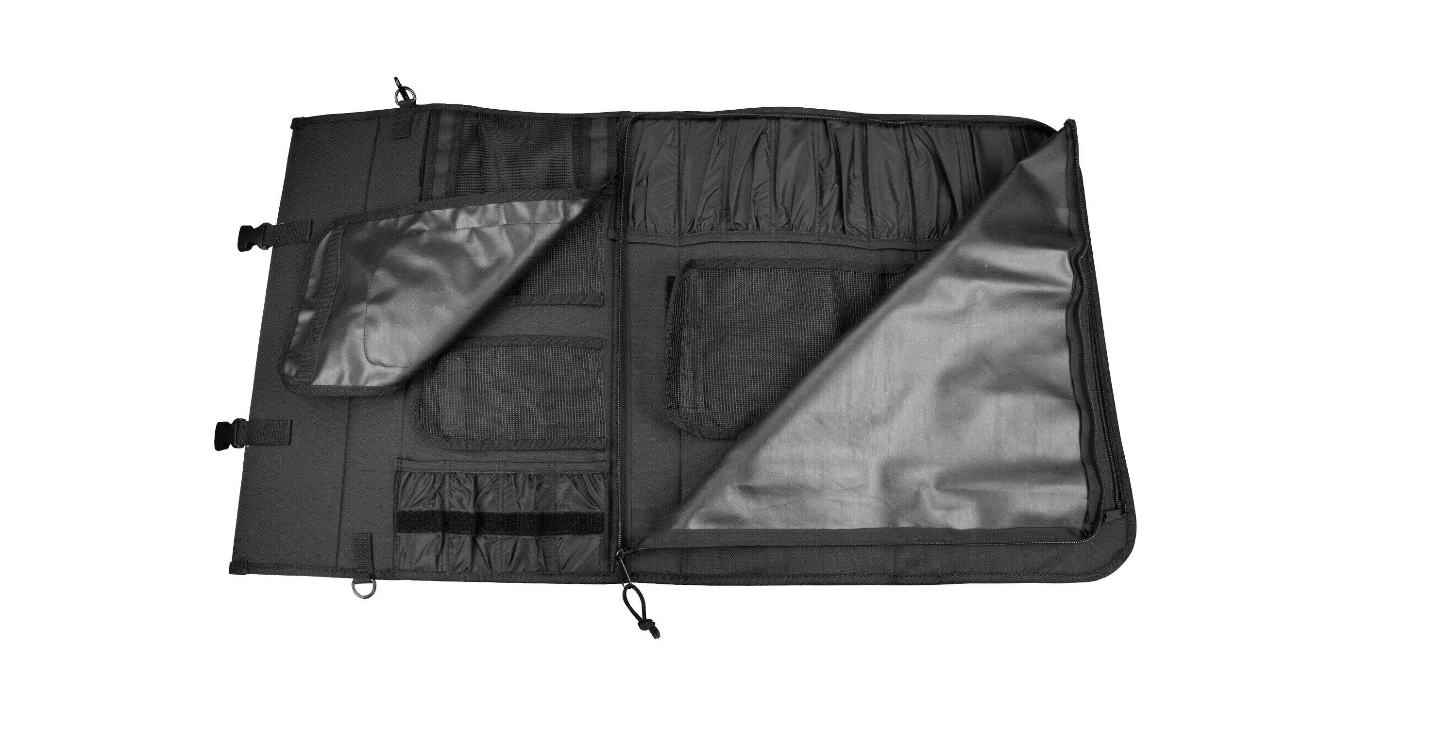 Usztywniona, składana torba z solidnego nylonu, w której można bezpiecznie przewozić i przechowywać noże Tamahagane. Wyposażono ją w wygodną rączkę i doczepiany pasek. Torba jest zapinana na klamry i posiada szesnaście kieszeni na różnej wielkości noże oraz przestrzeń na dodatkowe akcesoria. Komora z nożami zapinana jest w całości na zamek błyskawiczny.