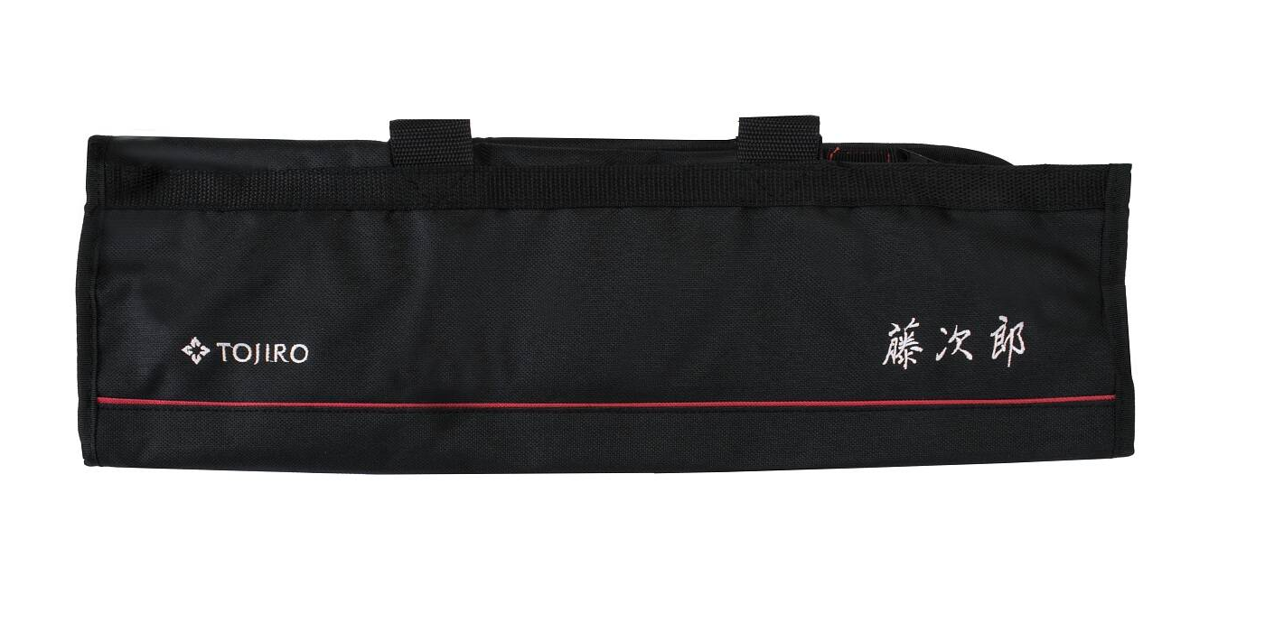 Poręczne, zwijane etui z solidnego, czarnego nylonu, w którym można bezpiecznie przenosić noże Tojiro, a także je przechowywać. Torba jest zapina się zamek błyskawiczny i posiada osiem kieszeni różnej wielkości. Umieszczone w niej noże nie ocierają się o siebie, co przedłuża żywotność ostrzy i chroni je przed stępieniem.