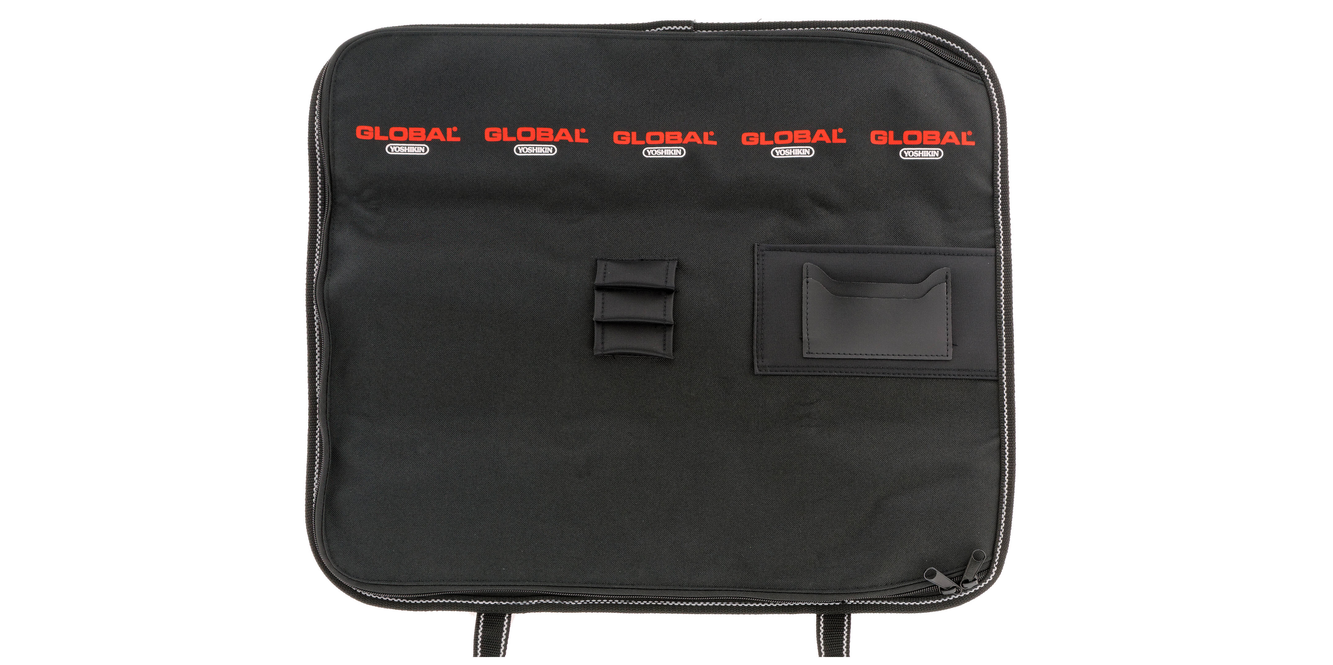 Poręczne, zwijane etui z solidnego, czarnego nylonu, w którym można bezpiecznie przenosić noże Global, a także je przechowywać. Torba jest zapina się na rzepy i posiada kieszenie różnej wielkości. Umieszczone w niej noże nie ocierają się o siebie, co przedłuża żywotność ostrzy i chroni je przed stępieniem.