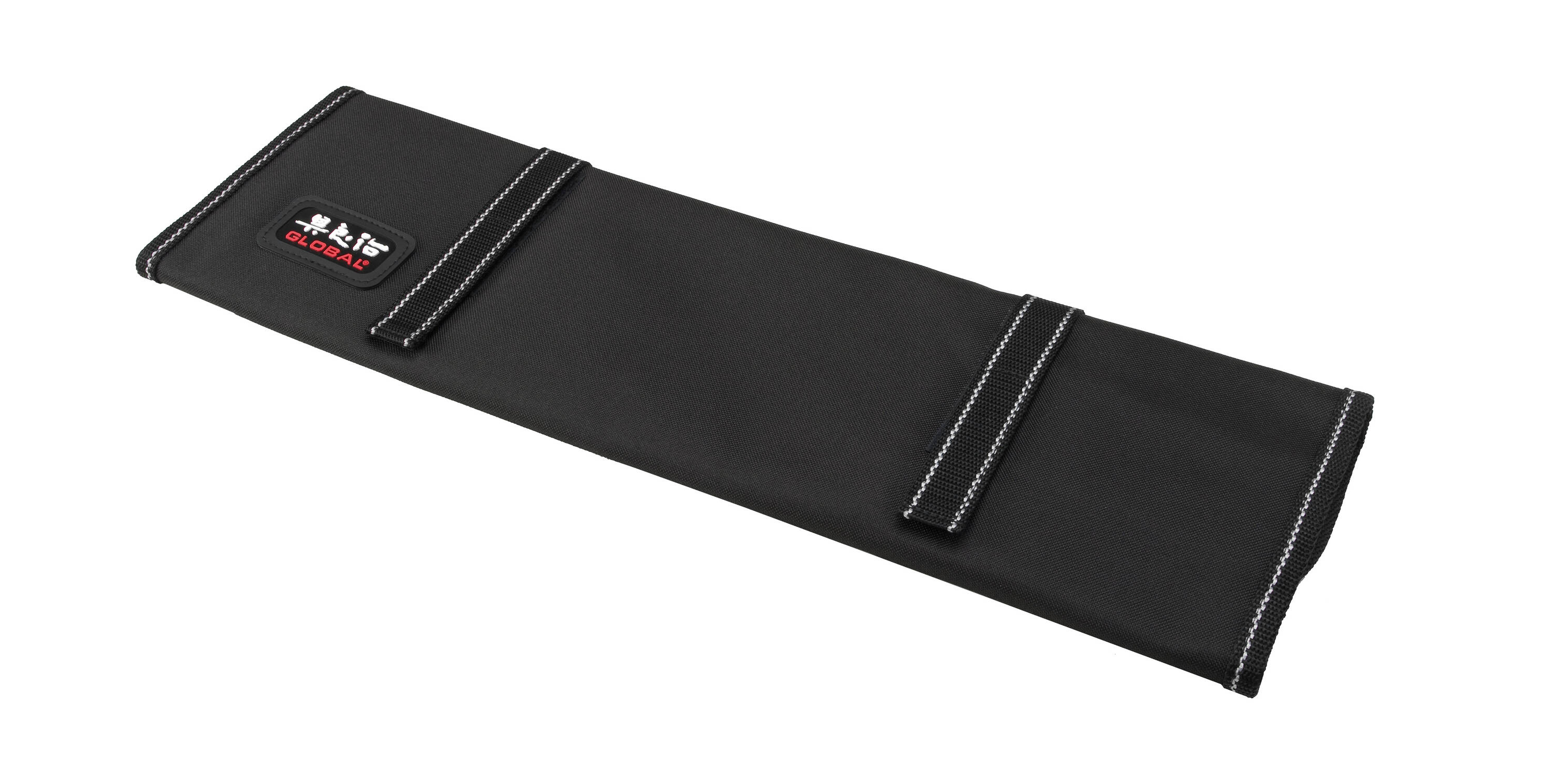 Poręczne, zwijane etui z solidnego, czarnego nylonu, w którym można bezpiecznie przenosić noże Global, a także je przechowywać.
